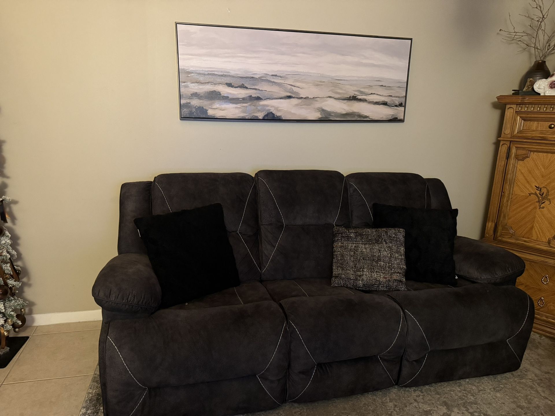 Gray Microfiber Manual Recliner Sofa in good condition. Need the space, giving away for FREE. Sofa has reclining seats on each end. Chair reclines. Will need to bring help and truck to load. Pick up West Pines 33029.