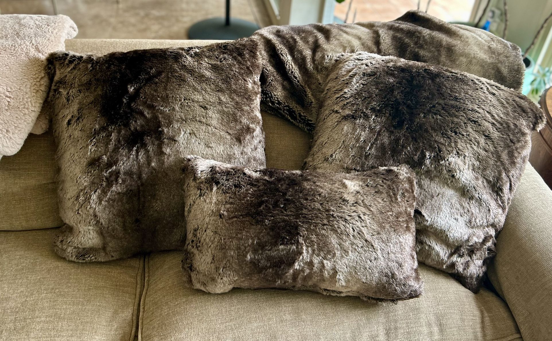 Excellent condition, barely used Have been in stored container due to move (2) 22x22 pillows $100 total (was 180 each) (1) 13x21 lumbar pillow $50 (was 165) (1) Throw 50x60 $125 (was 315) Set for 200 New this set is currently selling for over $800