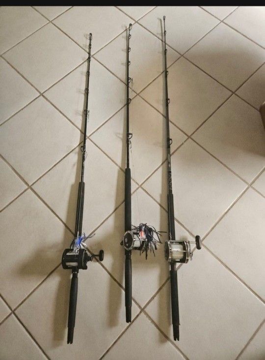 See second picture for rod info. 75$ each. You wont find a better price for some offshore combos. Ready to fish.
