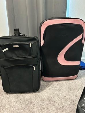 3 luggage 28inc, one 23 inch and one 19”. The 19” one is left The red one has holding handles on two different sides, one side handle is broken The black and pink 28 “ are sold