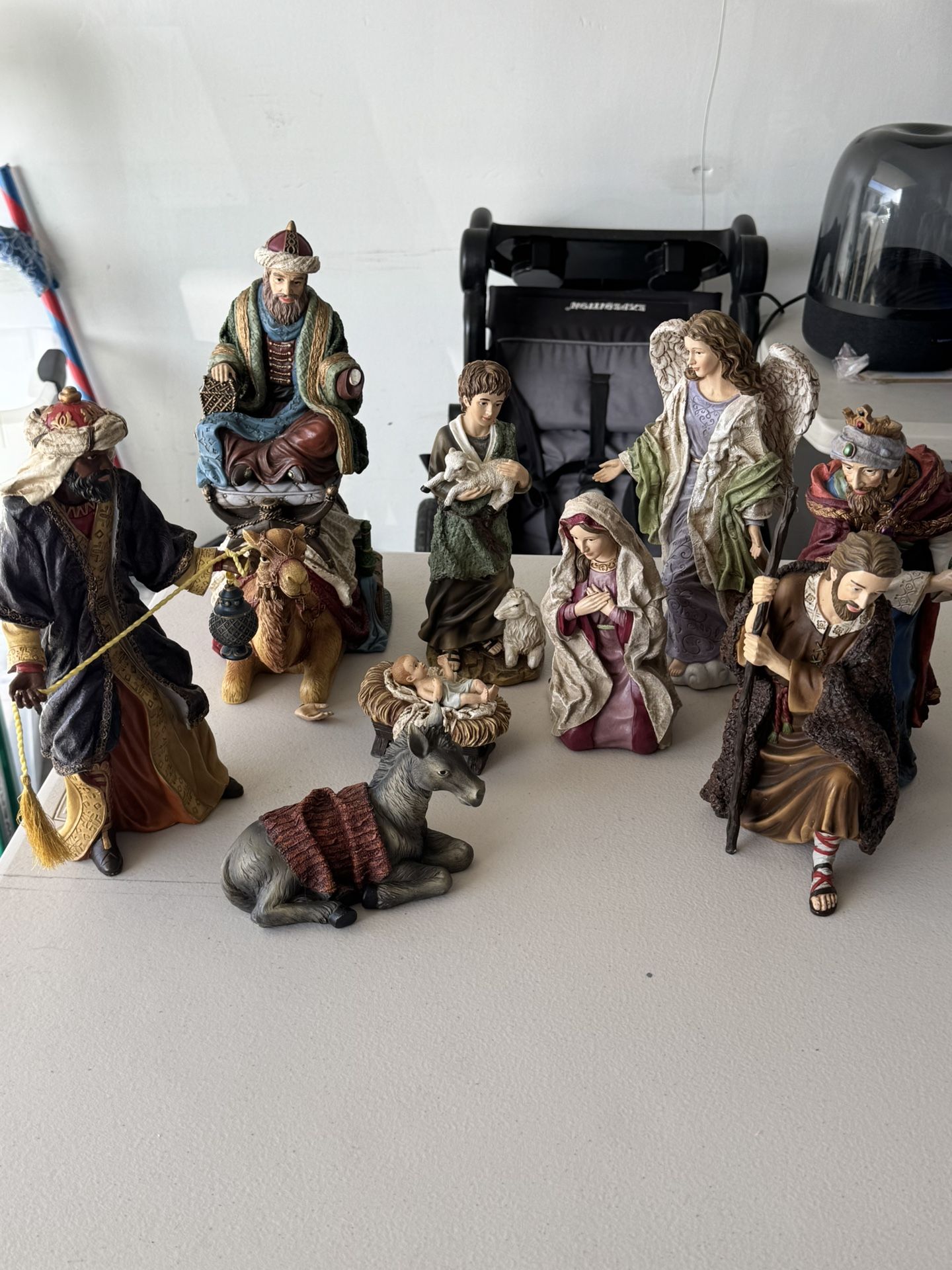 10 piece figurine set One of the figurines hand is broken off but it is there to be glued on. Other than that excellent condition