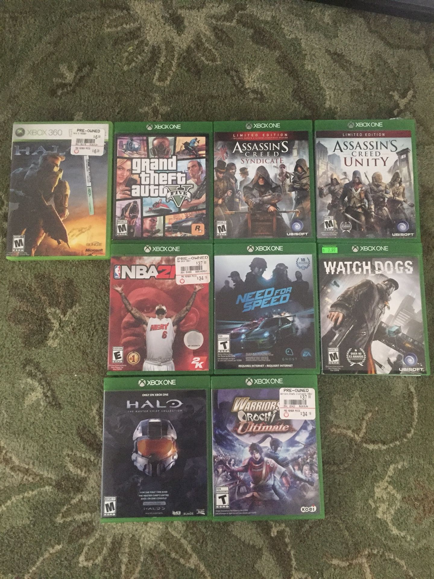 Halo, GTA5, Assassins Creed Syndicate, Assassins Creed Unity, NBA 2K14, Need for Speed, Watch Dogs, HALO Master Chief Edition, Warriors Orochi Ultimate Make me an offer