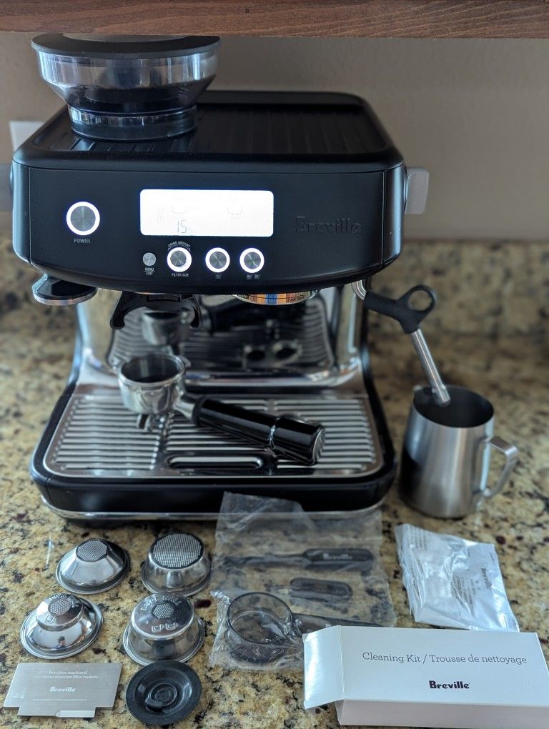Breville Barista Pro Espresso Machine in great condition, just a little over a year old, makes excellent espresso and froths perfect microfoam. It comes with all original accessories plus a new water filter. Cleaned and descaled. You can test it before buying it.