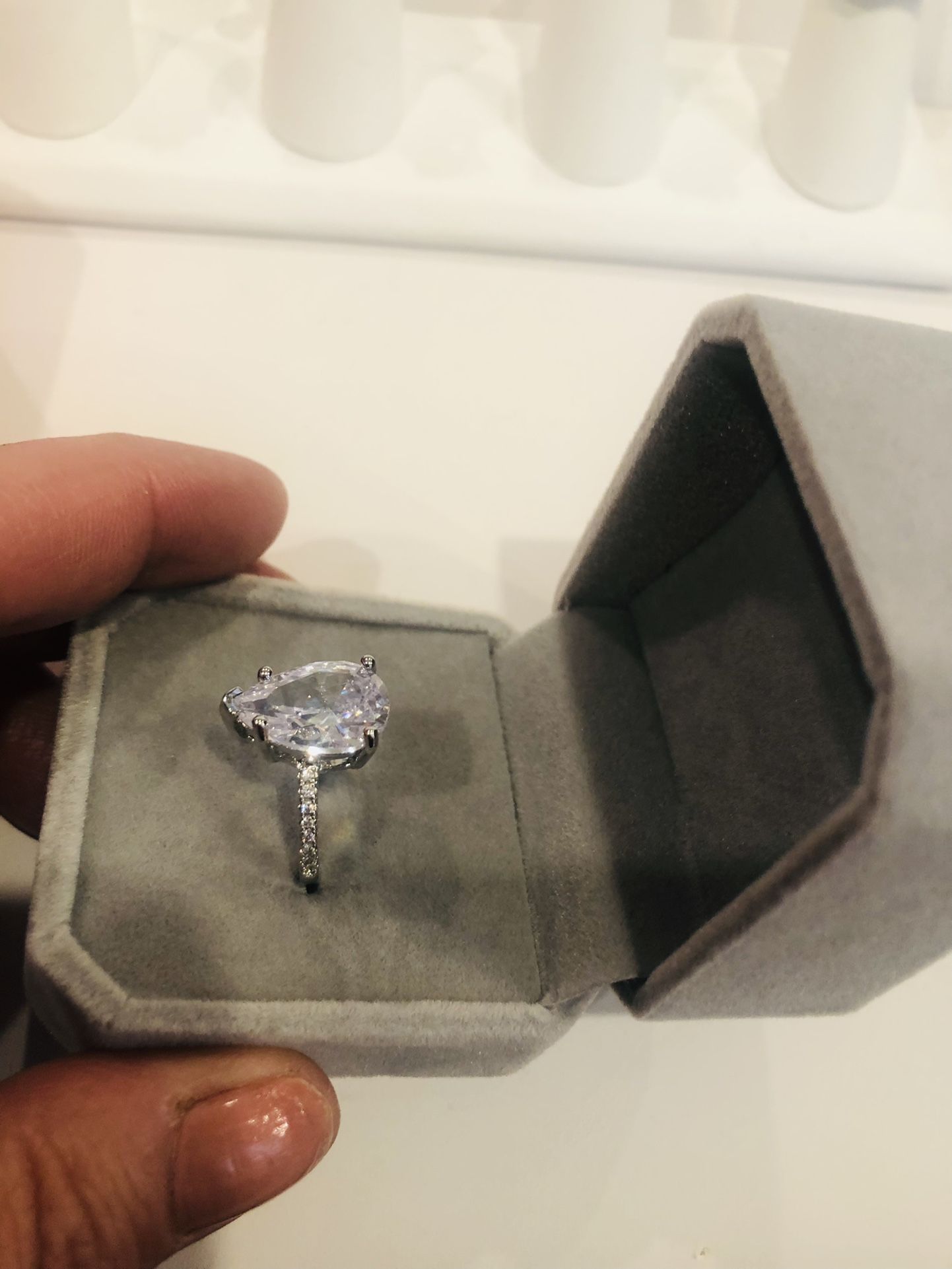 Beautiful teardrop lab created white sapphire ring. Size 6. Brand new. Comes in a velvet box. Shipping available