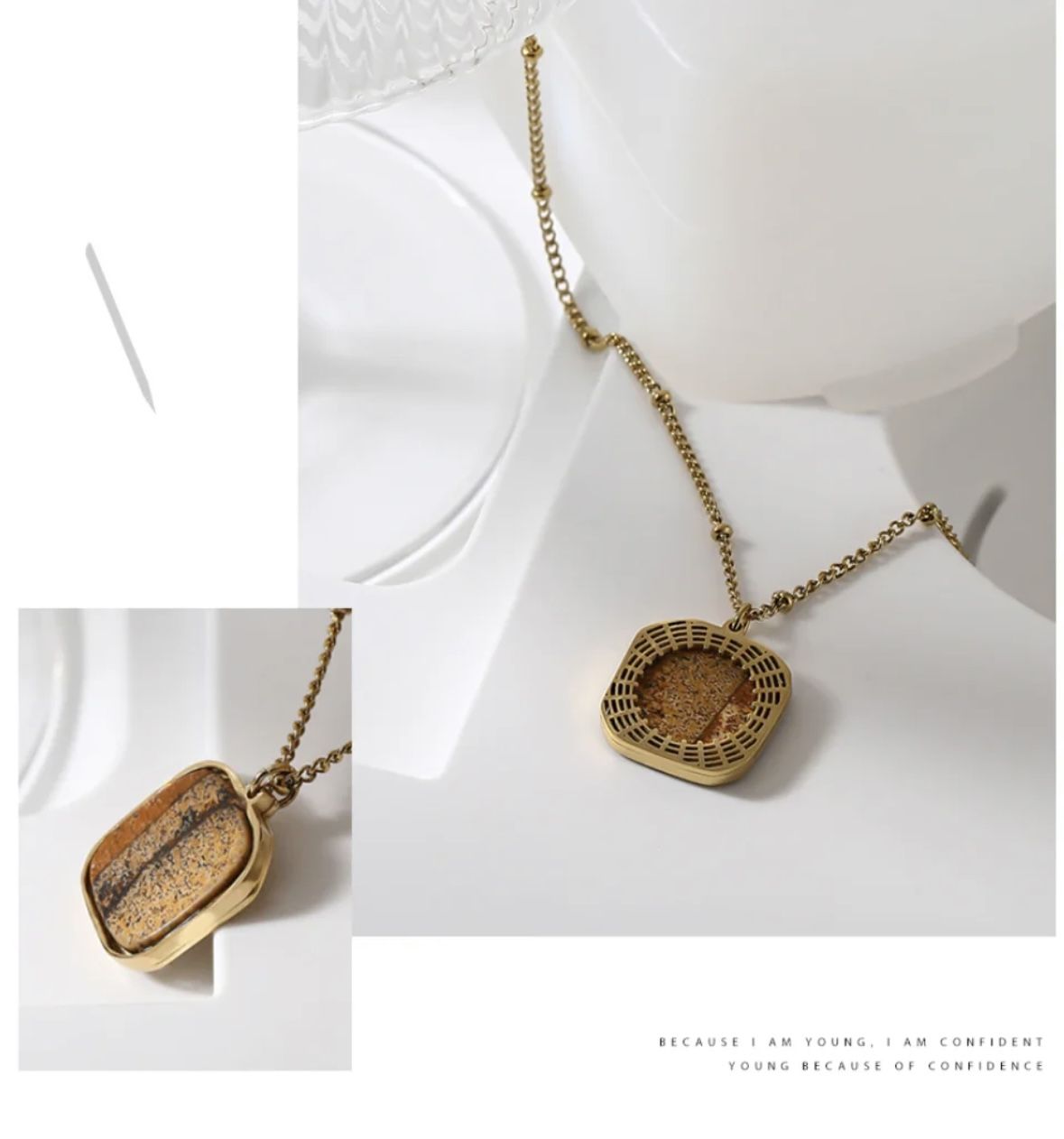 N102- 316L Stainless Steel Necklace With Natural Stone! LENGTH – 15 Inch + 2extra MATERIAL : Stainless Steel COLOR : Gold BAND COLOR : Gold Stone: Natural LIGHTWEIGHT, NICKEL FREE, WILL NOT TARNISH, HYPO-ALLERGENIC Necklace Is Perfect To Wear Everyday And Add A Precious Touch To Your Daily Outfits. They Are Perfect To Wear Alone Or Stack Them With The Other Rings Wearing Occasion: Wedding / Engagement / Anniversary / Propose / Party / Gift Gift For: Girl Friend / Wife / Mom Jewelry Maintenance: Avoid Chemicals / Avoid Bathing / Avoid Sweat / Avoid Chafing / Avoid Moisture / Wipe With A Soft Cloth / Keep Well / Replace Wear