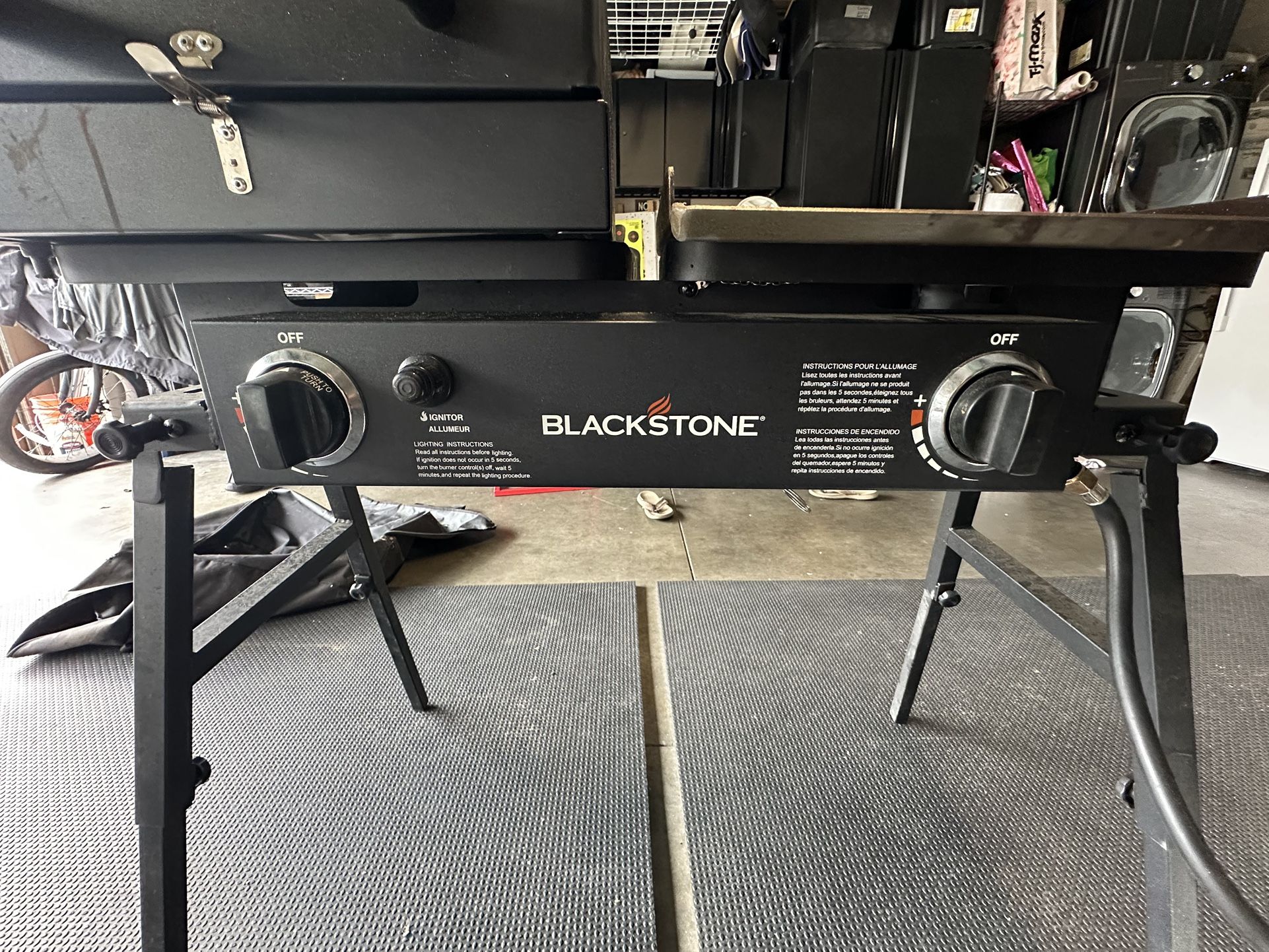 Selling my Blackstone propane combo grill that includes a cast iron grill, flat top griddle, and high-output side burner. This is an extremely versatile unit perfect for BBQ, smash burgers, breakfast, steaks, tacos, and outdoor cooking. Everything works perfectly. Burners ignite strong and heat evenly. Always stored in garage when not in use. Great setup for backyard cooking, camping, tailgating, or anyone serious about outdoor cooking.