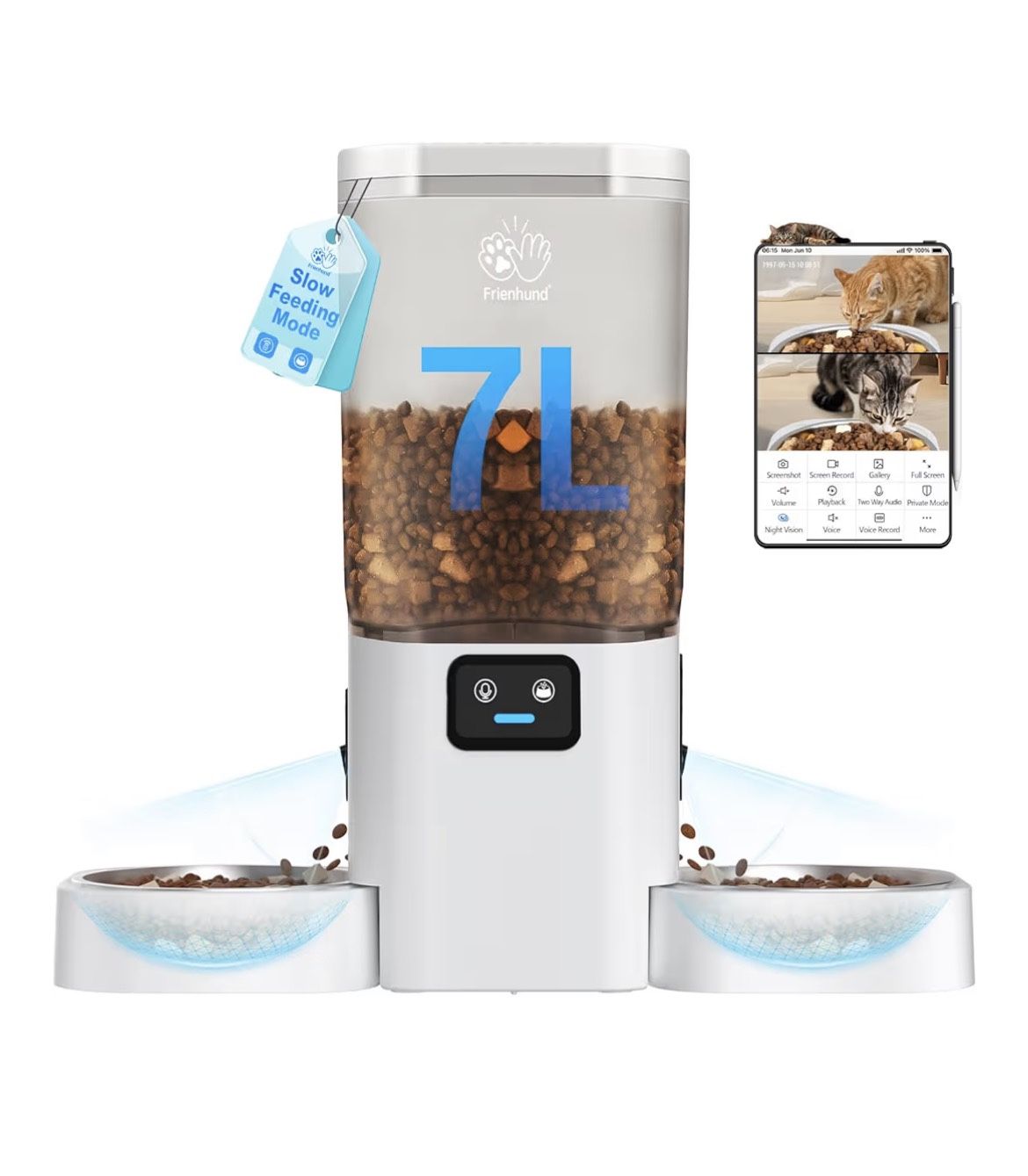 Frienhund Smart Pet ๐ฑ Feeder with Two Bowls & Two HD Cameras with Night Vision, 7L Auto Food Dispenser for Multiple Pets ๐ถ