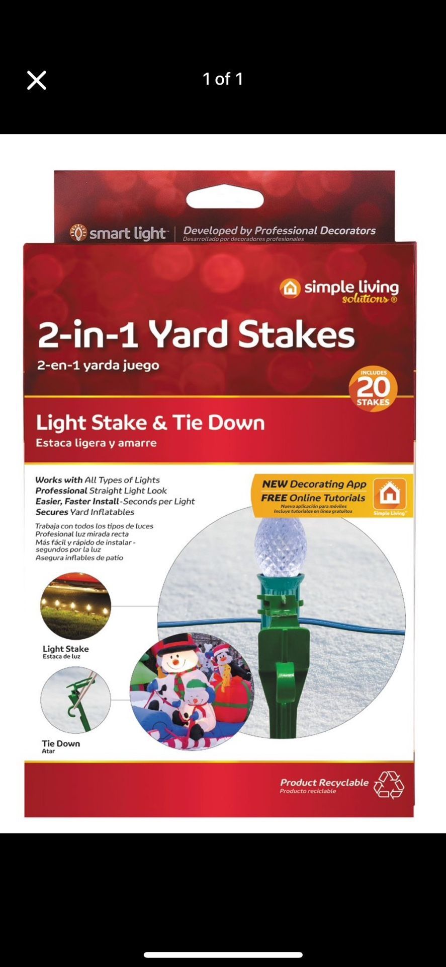 Works with all types of string lights. Can also be used as an inflatable tie down! These Simple Living Solutions 2-in-1 Yard Stakes will make your outdoor holiday decorating quicker and easier while giving you that straight, professional look! The Simple Living Solutions 2-in-1 Yard Stakes works with all types of string lights to line driveways, walkways and more! Also works as a tie down for inflatables and other yard decor. With the light clip flipped up, each stake measure approximately 9 inches. With the light clip flipped downward, each stake measure approximately 7.5 inches.