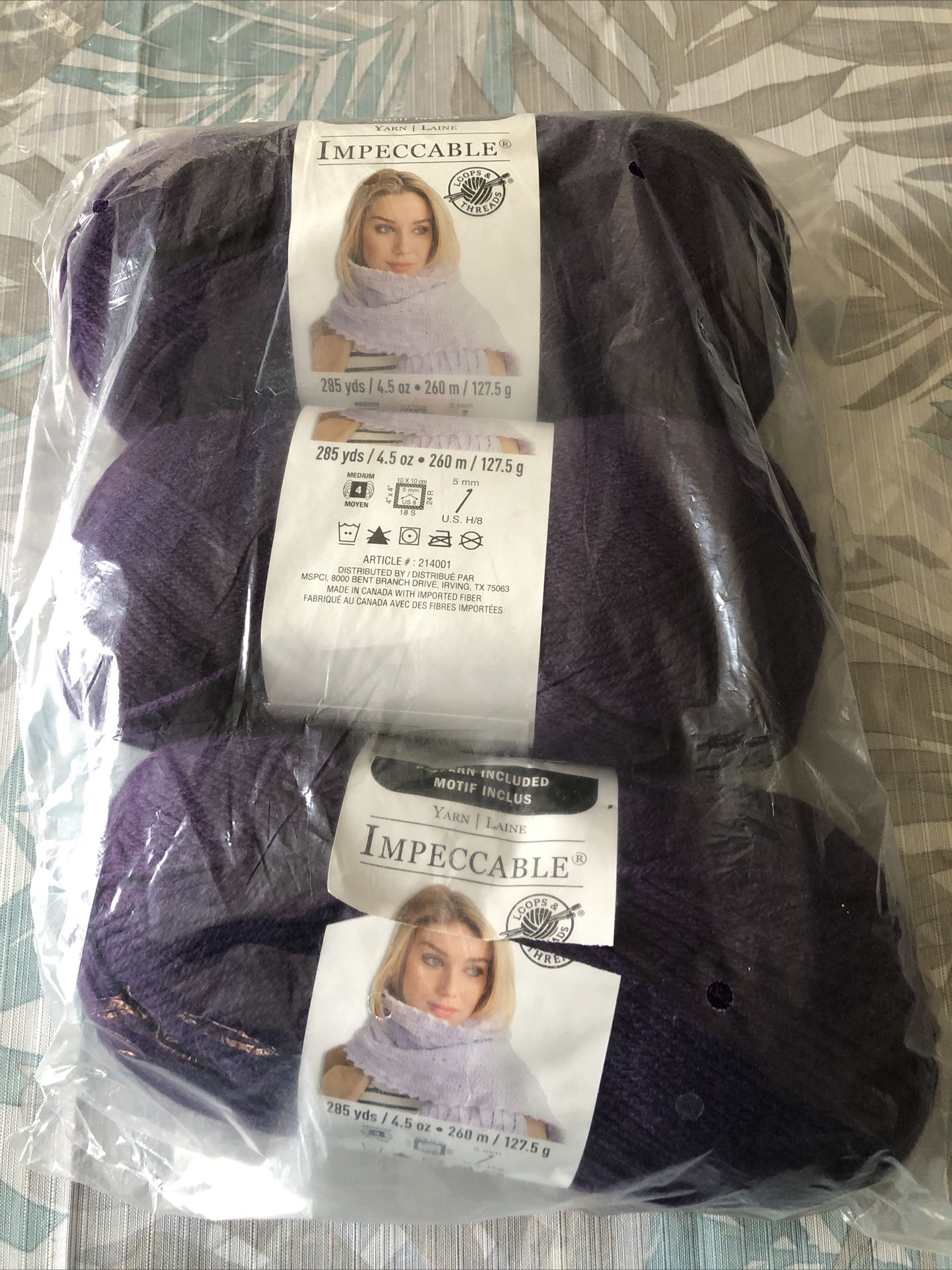 Loops & Threads Impeccable Yarn, Amethyst Purple - 3 Skeins, NEW