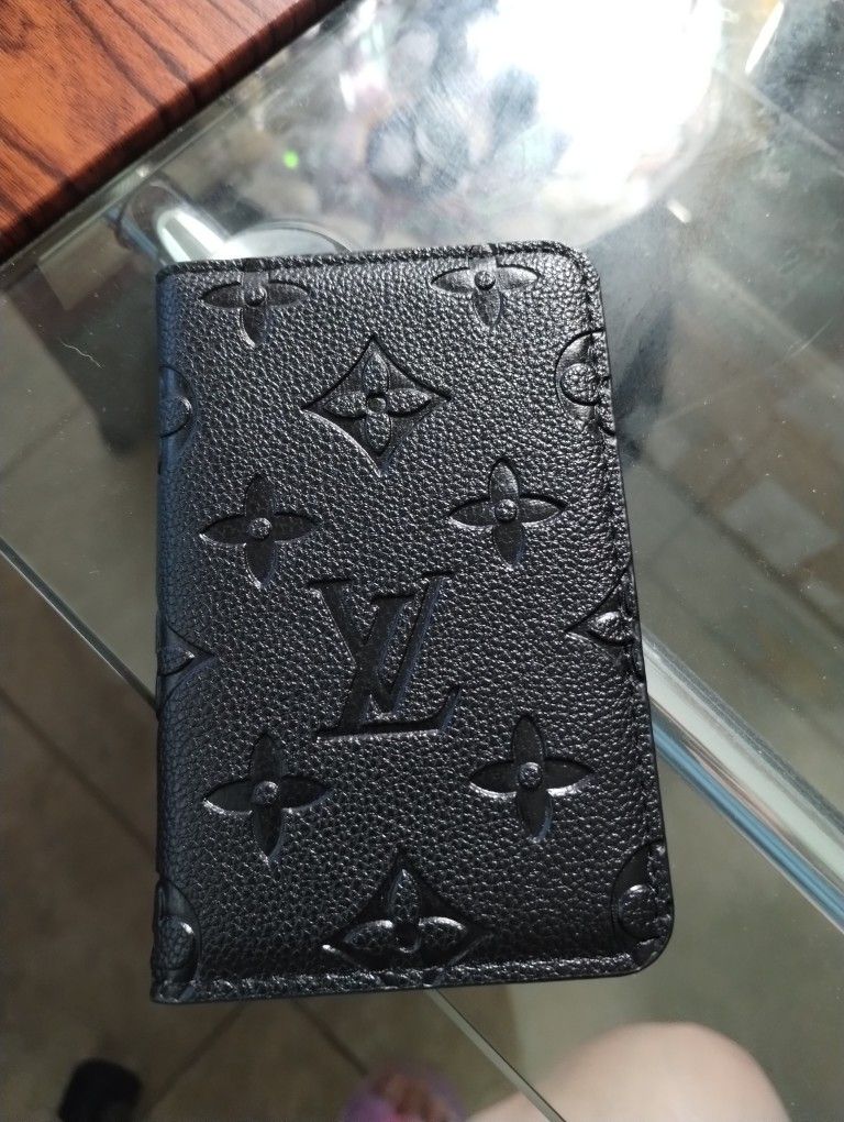 Brand New Black Embossed Card Holder/Wallet. Has several credit card slots and to open slip pockets. Will fit in any purse or just in your pocket. Men or women can use this. Smoke-free home. Check out my other listings!