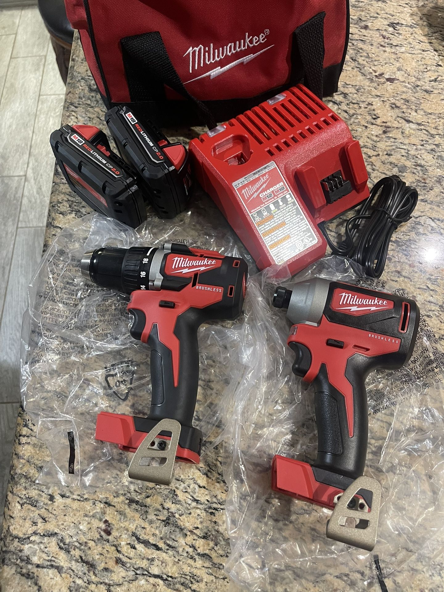Milwaukee brushless drill & impact driver m18 2- m18 2.0 batteries and charger