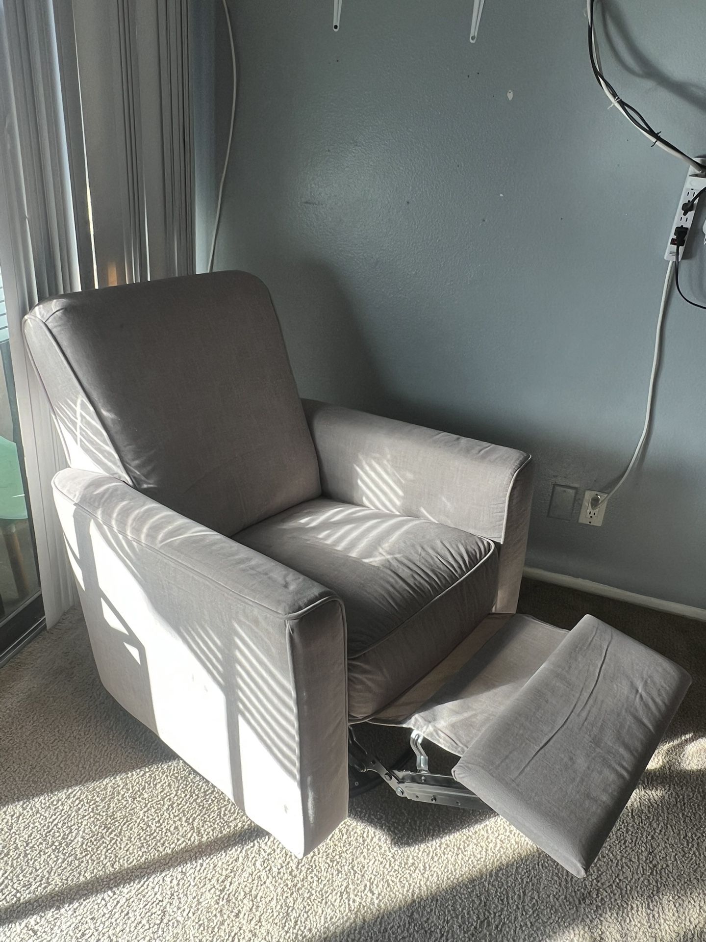 In good shape, it just need to be cleaned it he spot I pictured. It’s a rocking chair too