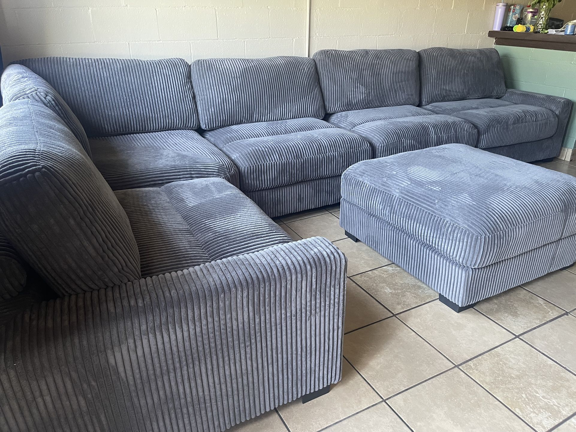 6pc Modular Sectional Sofa with Ottoman Dimensions: 164”L x 90” x 36”H Deep seating Plush corduroy fabric Large ottoman Modern style Everything Comes Brand New Delivery Available Please check out all my offers •Bedrooms. •Mattress •Dining Table Sets •Sofas •Sectionals •Mirrored Furniture •Kids Furniture Follow my IG @Furniture.Boss Contact me direct (951) 251-2983 Thanks for reading my ad