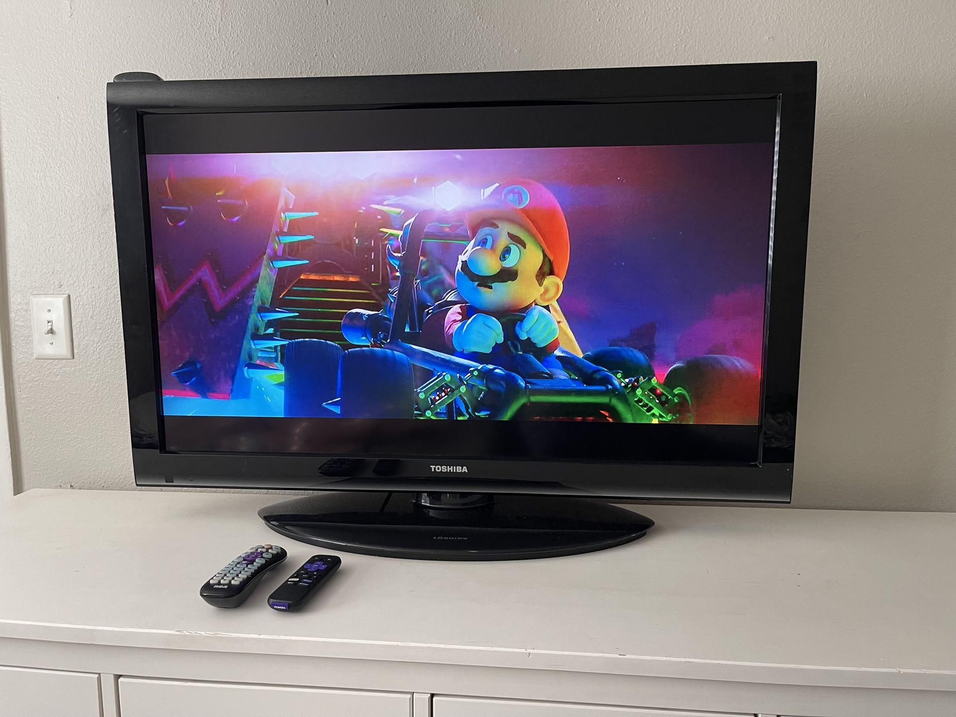 includes Roku and the remotes 43 inch