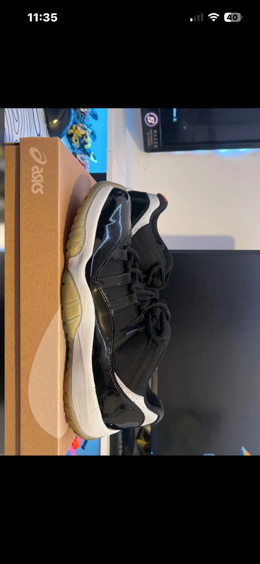 USED-JORDAN 11 INFRARED LOW SOULS ARE YELLOWED BUT SHOES OVERALL ARE IN GOOD SHAPE