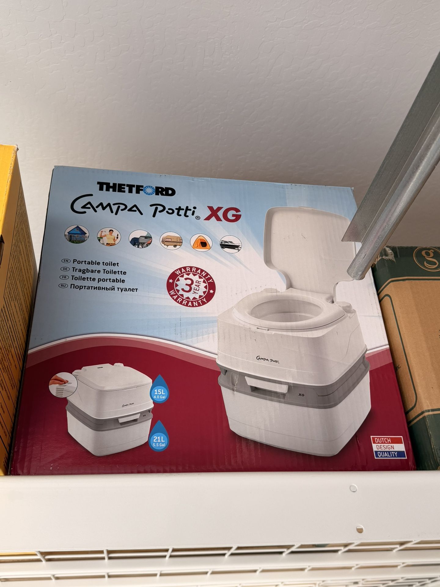 New/never used in box Thetford portable toilet. Chemical (never opened included)