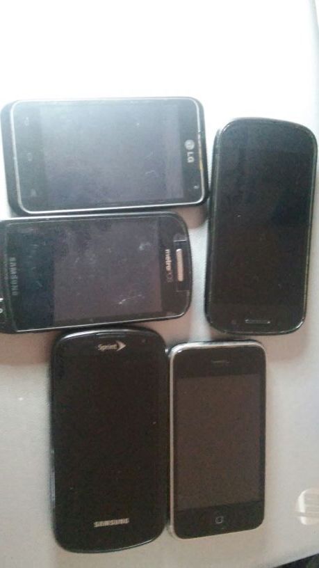I got 5 smart phones they're old but functional..one iphone 38GB 1SAMMSUNG metro .1lg metro.1sammsung sprint.an 1galaxy s for sprint all working,,.. asking 50$for all..