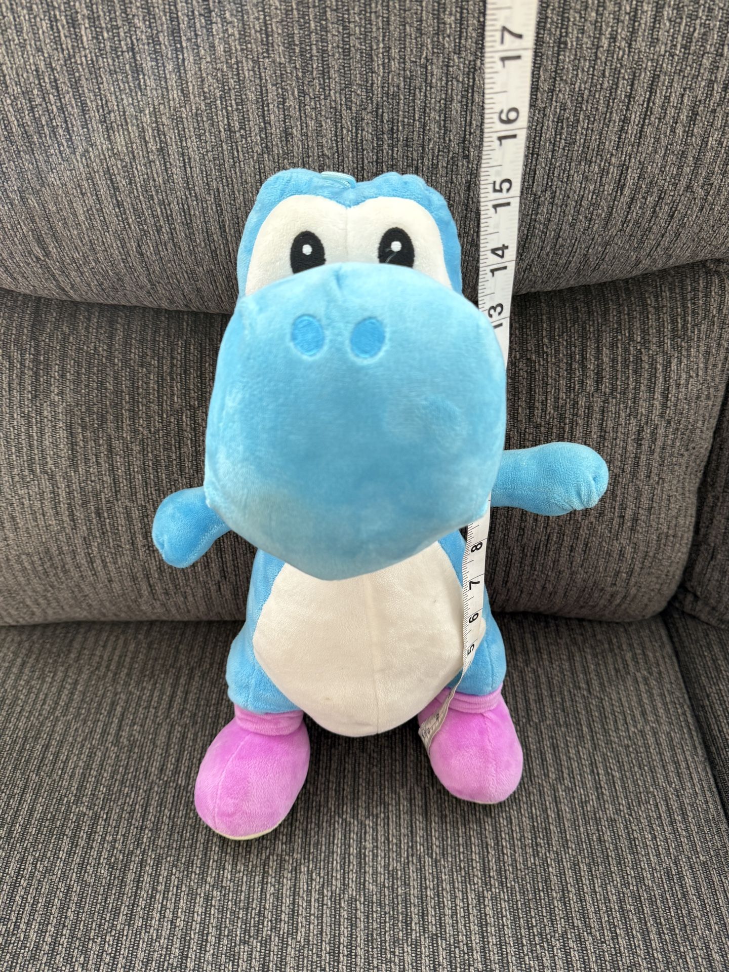 Yoshi Plush Super Mario Brothers Light Blue Plush with Purple Shoes