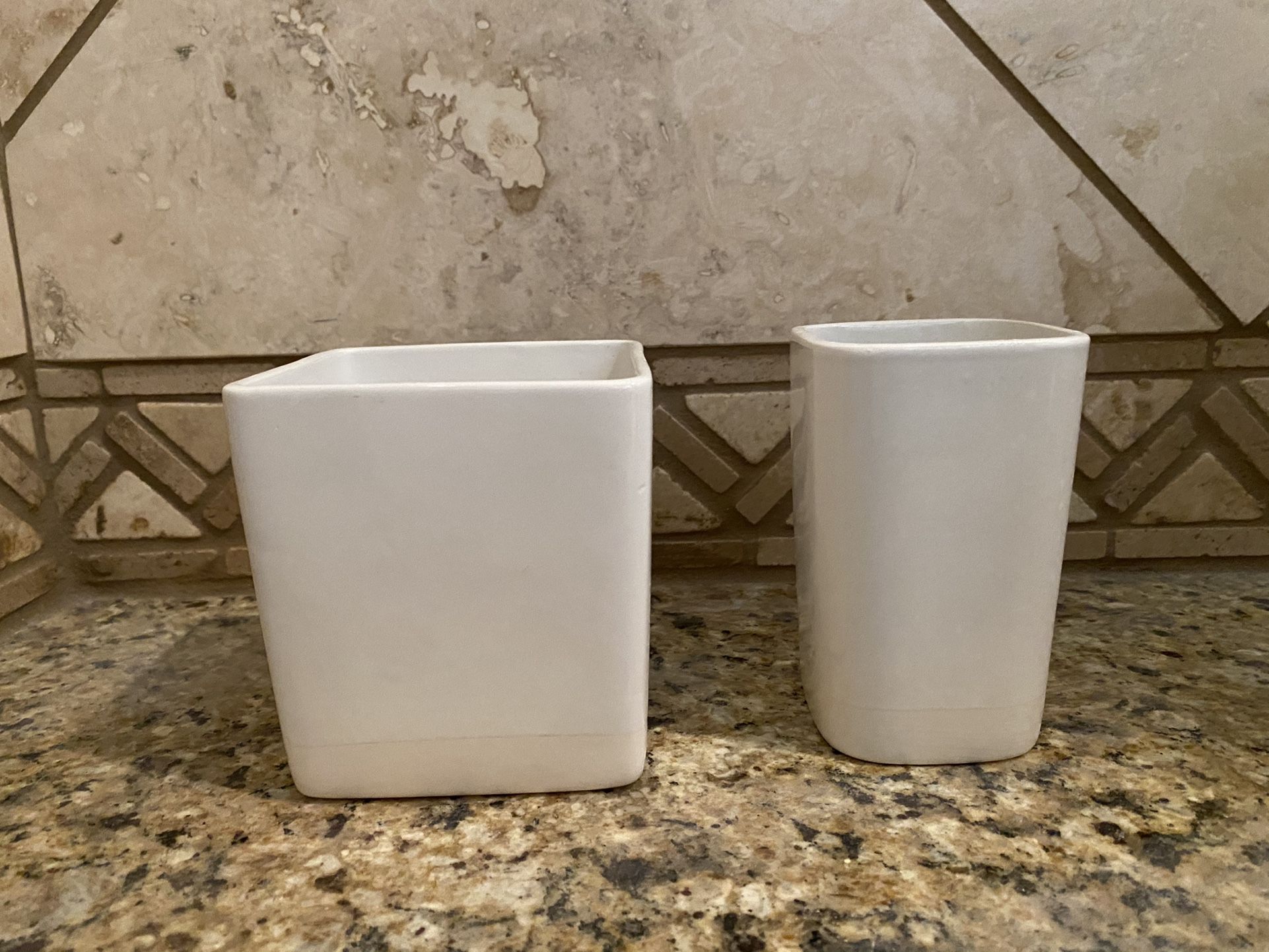 New. No chips or cracks. Ceramic toothbrush holder and large size holder (can be used for makeup brushes or hairbrushes/combs). Price firm. Serious inquires only please. ****NO TRADES AND NO OFFERS****