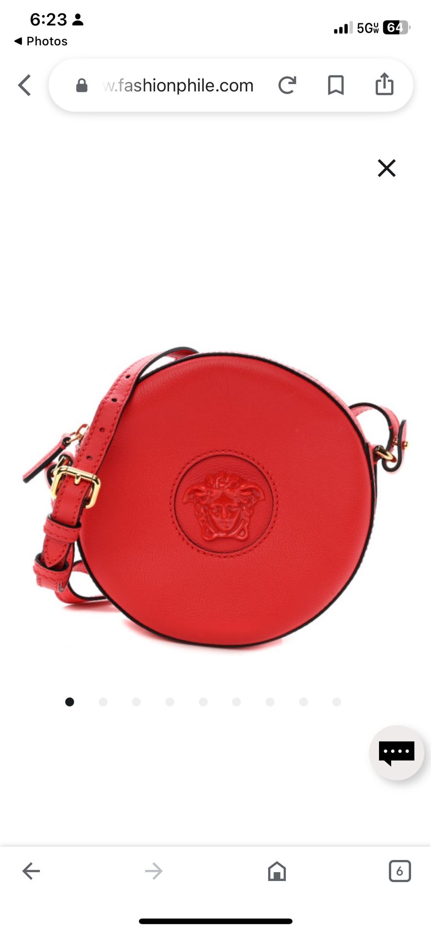 This authentic VERSACE Calfskin La Medusa Round Camera Bag in Red is crafted of luxurious grained calfskin leather. The bag features an adjustable leather shoulder strap, polished gold hardware, and a prominent red Medusa head on the front. The top zipper opens to a purple fabric interior with a patch pocket. Size: Length: 7.00 in Height: 7.00 in Width: 2.00 in Drop: 19.75 in The bag is in “new” condition. Will come with dust bag upon purchase
