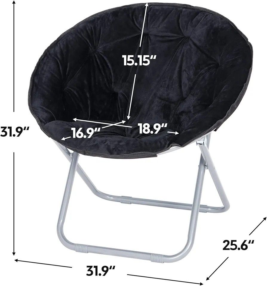 Faux Fur Folding Moon Chair with Metal Frame, Saucer Chair for Adults, Portable Chair for Bedroom, Dorm Rooms, Apartments, Lounging, Garden and Courtyard, Black