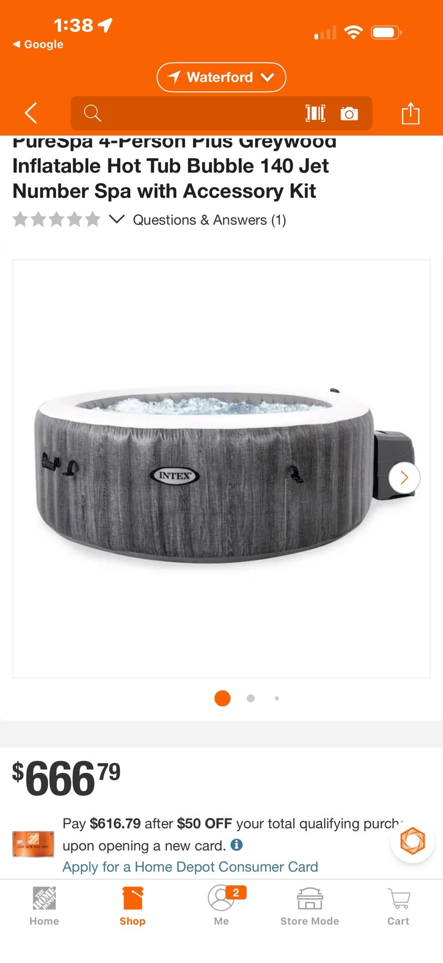 I have an inflatable four person hot tub. It comes with pump filter filters extra filters. It is brand new in the box. The box has never been opened. this picture here shows you what it looks like. The only difference is instead of gray. It is black on the outside white inside.