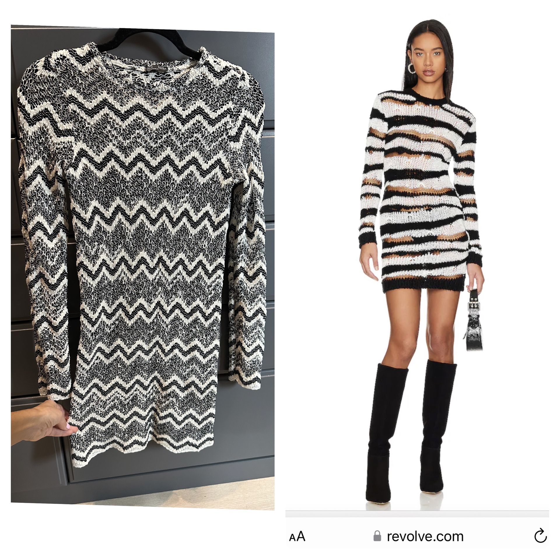 Zara Knit Missoni Black & White Chevron LS Sweater Fitted Dress - S