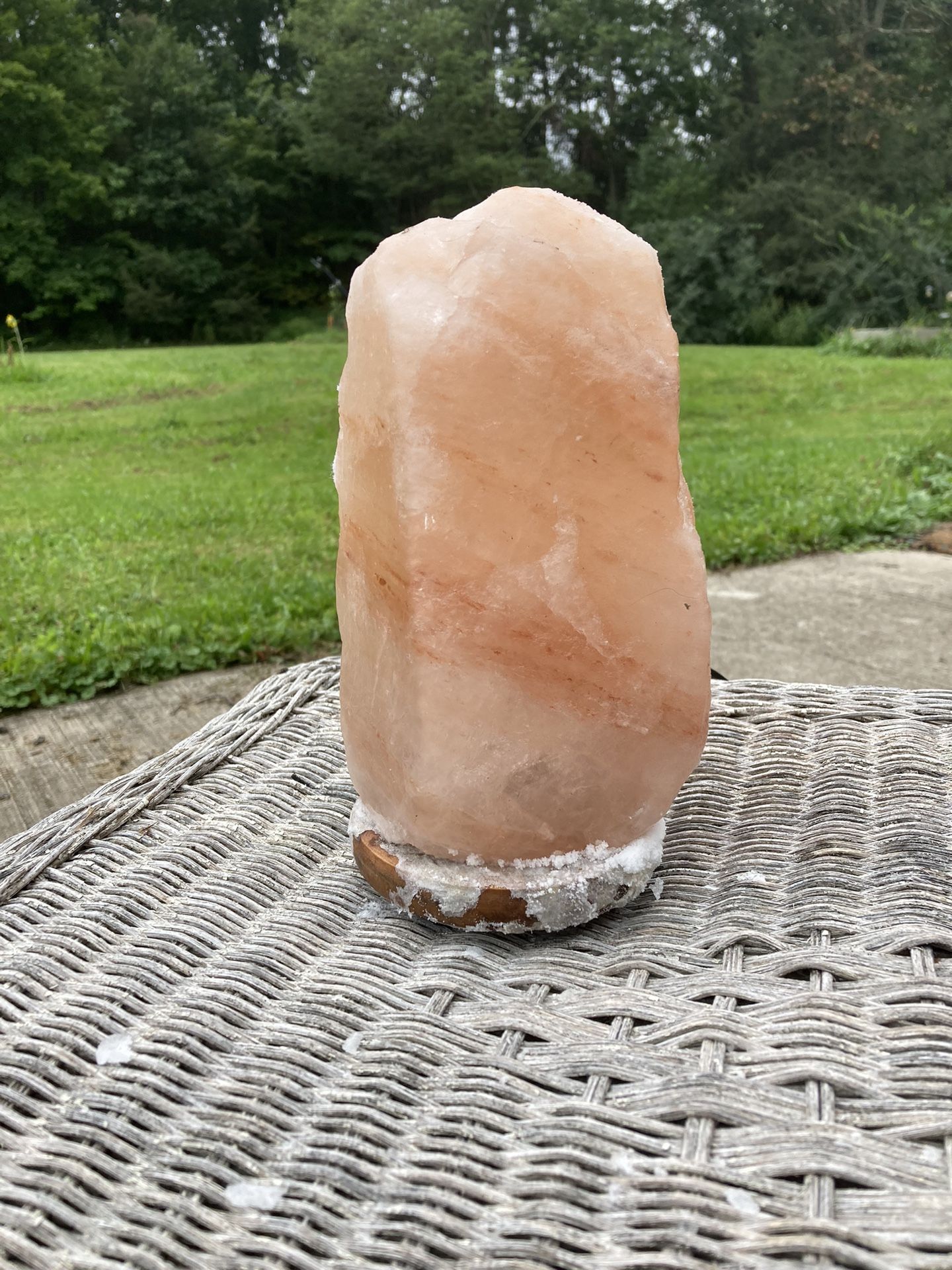 Himalayan salt lamp with wood base. Approximately 10” tall, like new.