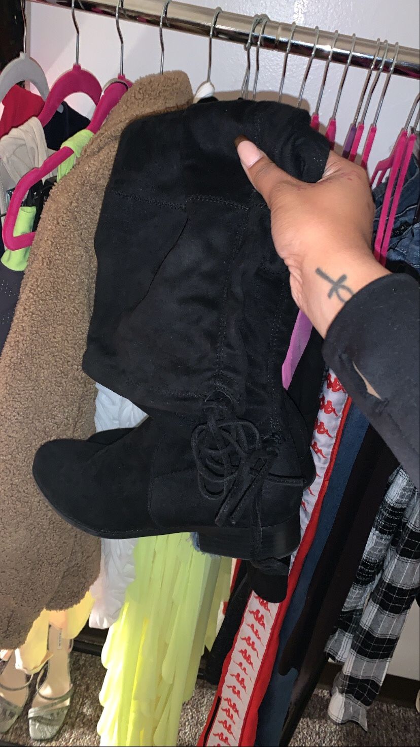 Shoedazzle Low Heel Boots! Sz 10, Knee High & Ties In The Back