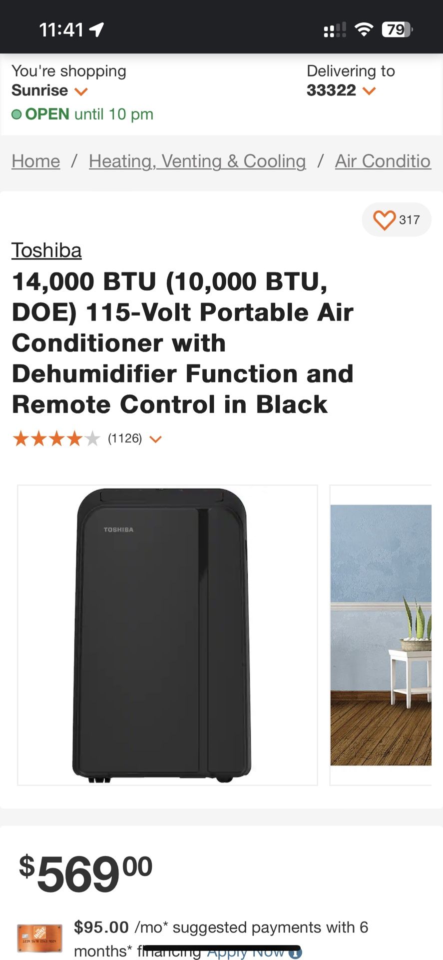New No Box Tashiba 10,000 BTU A/C Portable Air conditioner