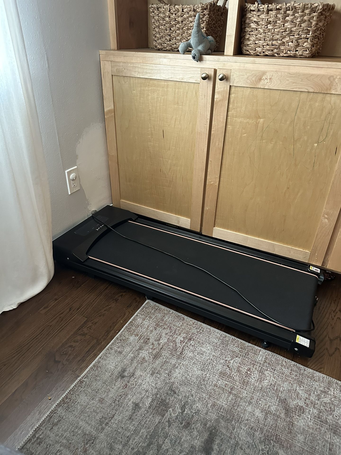 Under desk treadmill and walking pad. 48.6” x 20” x 4.9” Great condition. Works perfectly. Comes with remote. Highly recommend!