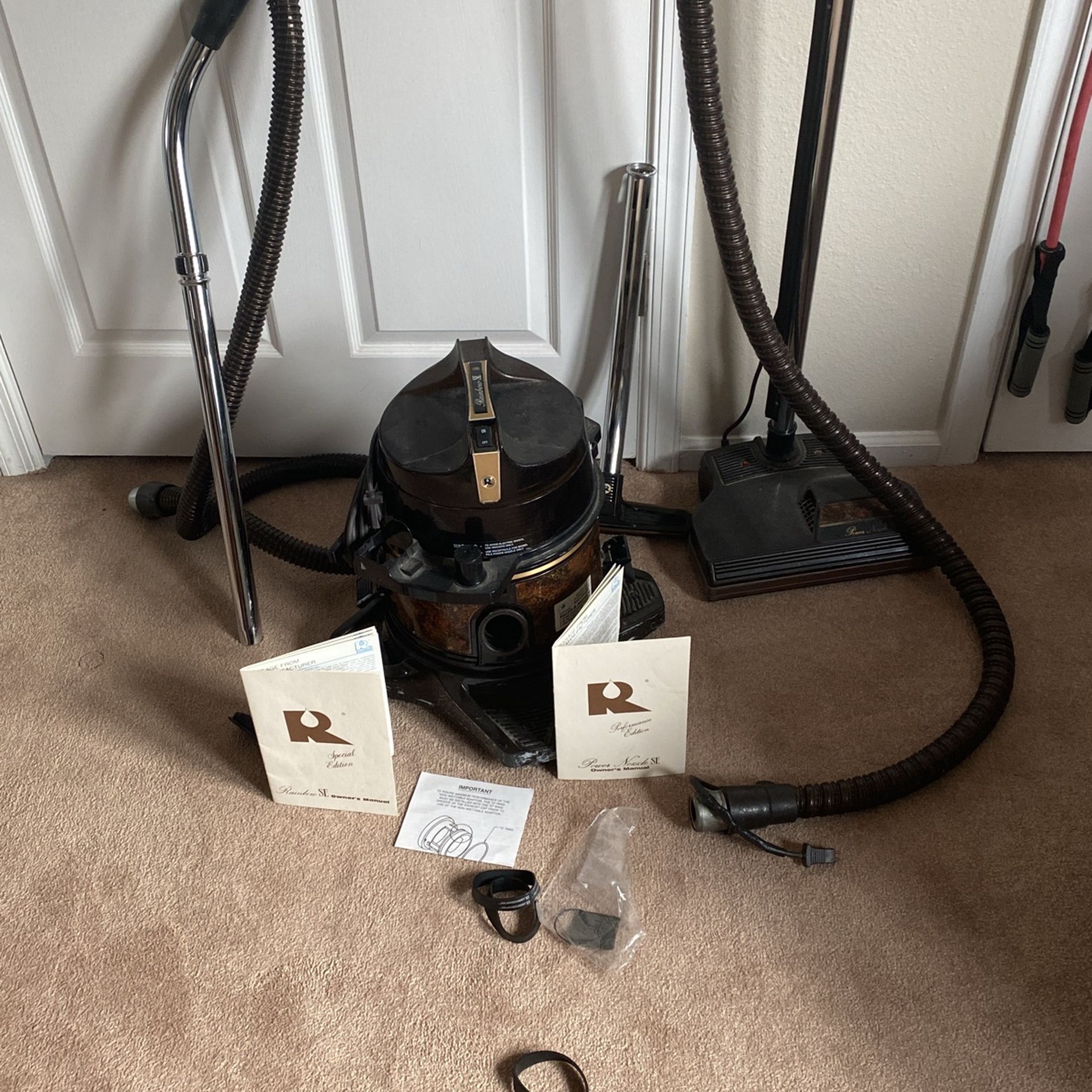 Rainbow vacuum cleaner with attachments, extra belts and manuals.
