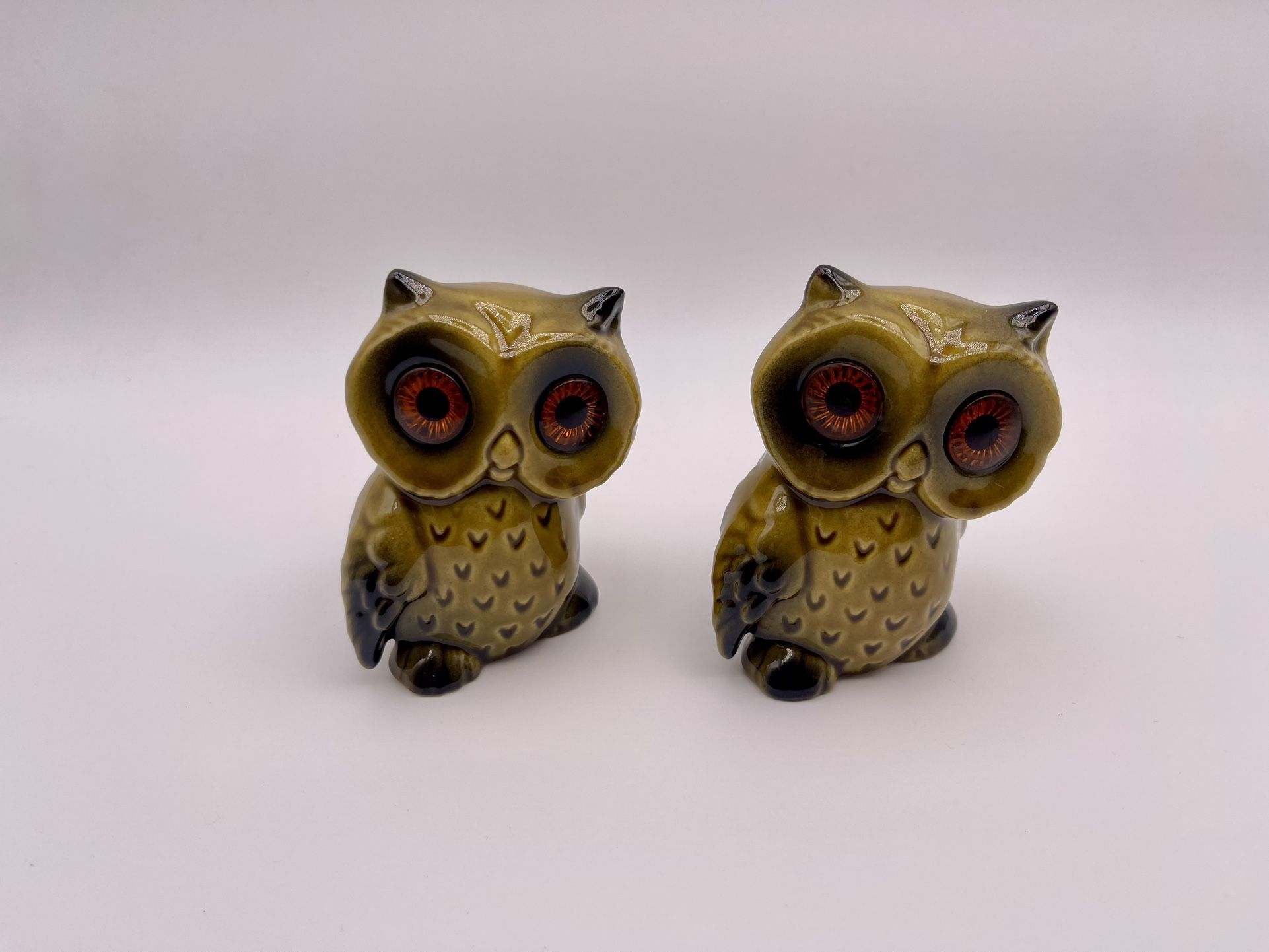 These Vintage Roselane Pottery Owls are a charming addition to any collection. Made in the United States between 1(contact info removed), these ceramic owls stand at 3 inches tall and 2.25 inches wide. With a nostalgic theme of owls, these handmade pieces showcase the craftsmanship of Roselane Pottery. Perfect for owl lovers or collectors of decorative pottery, these vintage items are sure to add a touch of whimsy to any space