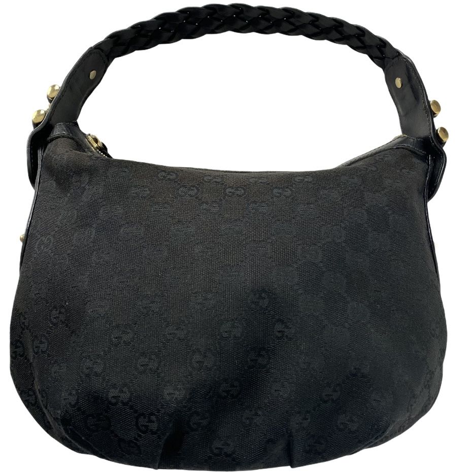 Gucci GG Canvas Hobo Handbag - color : black - gold tone hardware - condition : good used condition. Some wear on the canvas (corners and one side of the bag (from rubbing against the body) See the pictures.