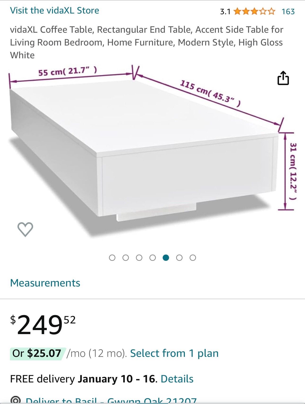 I got this for my new apartment less than a month ago. I also ordered a sectional couch online. It turns out the couch was a lot bigger than I thought. After setting it up, there was no room left for the coffee table, so I don't really need it anymore. However, I won't accept lowball offers.