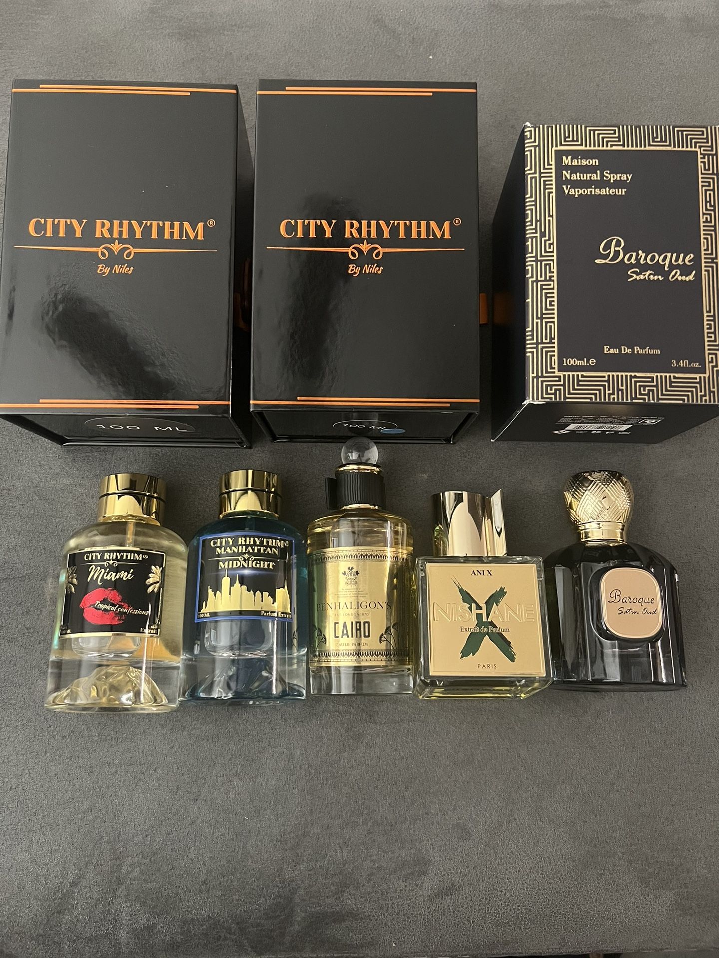 Selling 5 bottles of fragrance. NO TRADES City Rhythm Miami Tropical Confessions: 99% full - $170 Retails $190 plus tax Scent profile: Sugar π¦, Tropical π΄, Boozy π₯ City Rhythm Manhattan Midnight: 98% full - $168 Retails $190 plus tax Scent profile: Smoky π¨, Incense π―οΈ, Black Tea βοΈ, Blue Powerade πΎ Penhaligons Cairo (no box): 90% full - $200 Retails $260 plus tax Scent Profile: Rose πΉ, Woods πͺ΅ , Green Nishane Ani X: 100% full - $275 Retails $385 plus tax Scent Profile: Vanilla π¦, Citrus πβπ© π, Aromatic