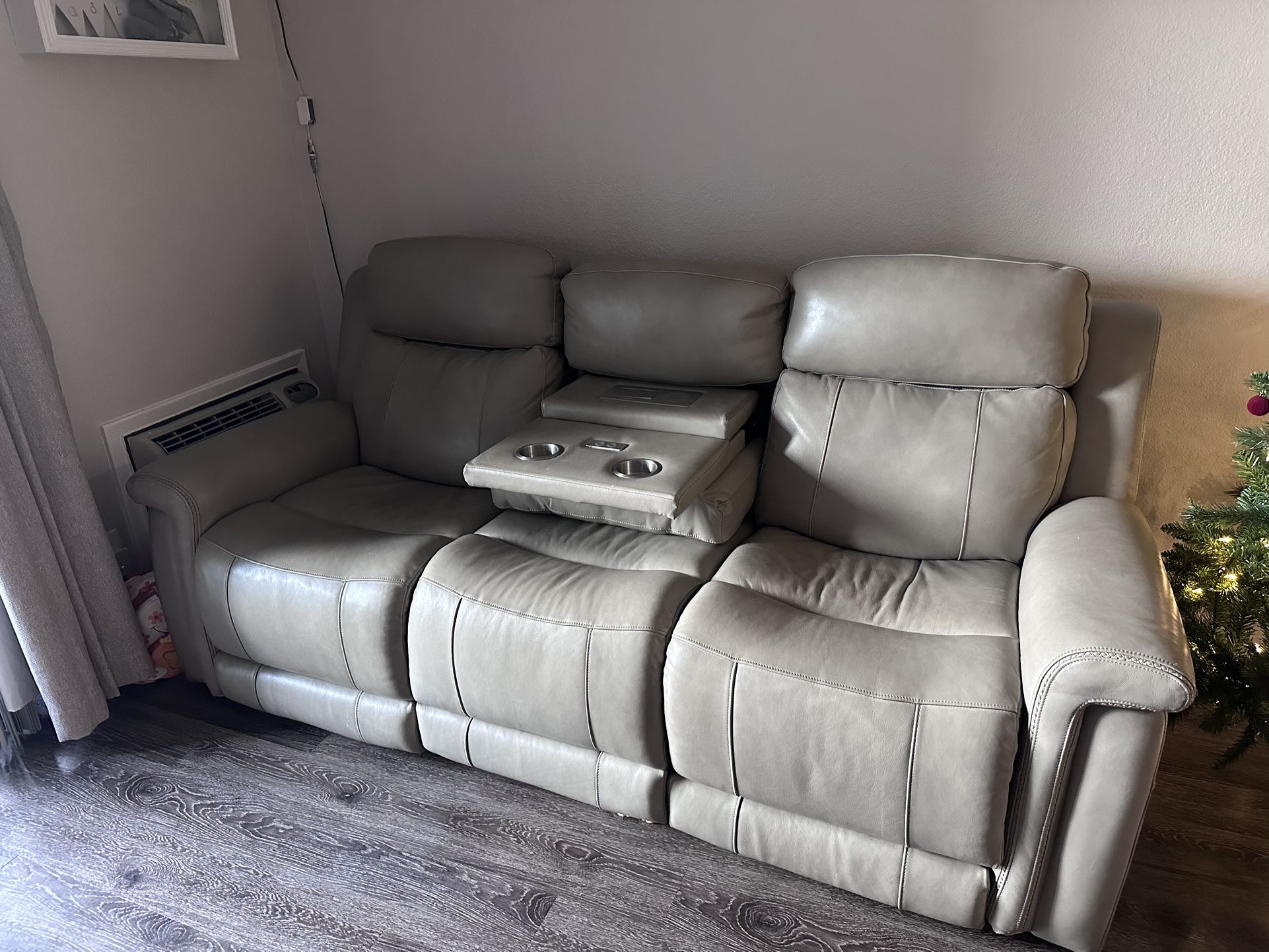 Selling a modern power reclining sofa in great condition. Originally purchased from Living Spaces for ~$2,000 • Power recline on both ends with USB port on the side • Reclines almost fully flat • Center console with: • 2 USB ports • Outlet port • Wireless charging • 2 built-in lights • Cup holders • Comfortable, supportive cushions • Clean, well-kept, smoke-free home Perfect for movie nights, lounging, or a family living room. Only selling because we bought 2 but aren’t using the extra one. Needs a gentle wipe down. Serious offers welcome 📍 Pickup only You’ll need a truck/van (heavy but manageable with help)