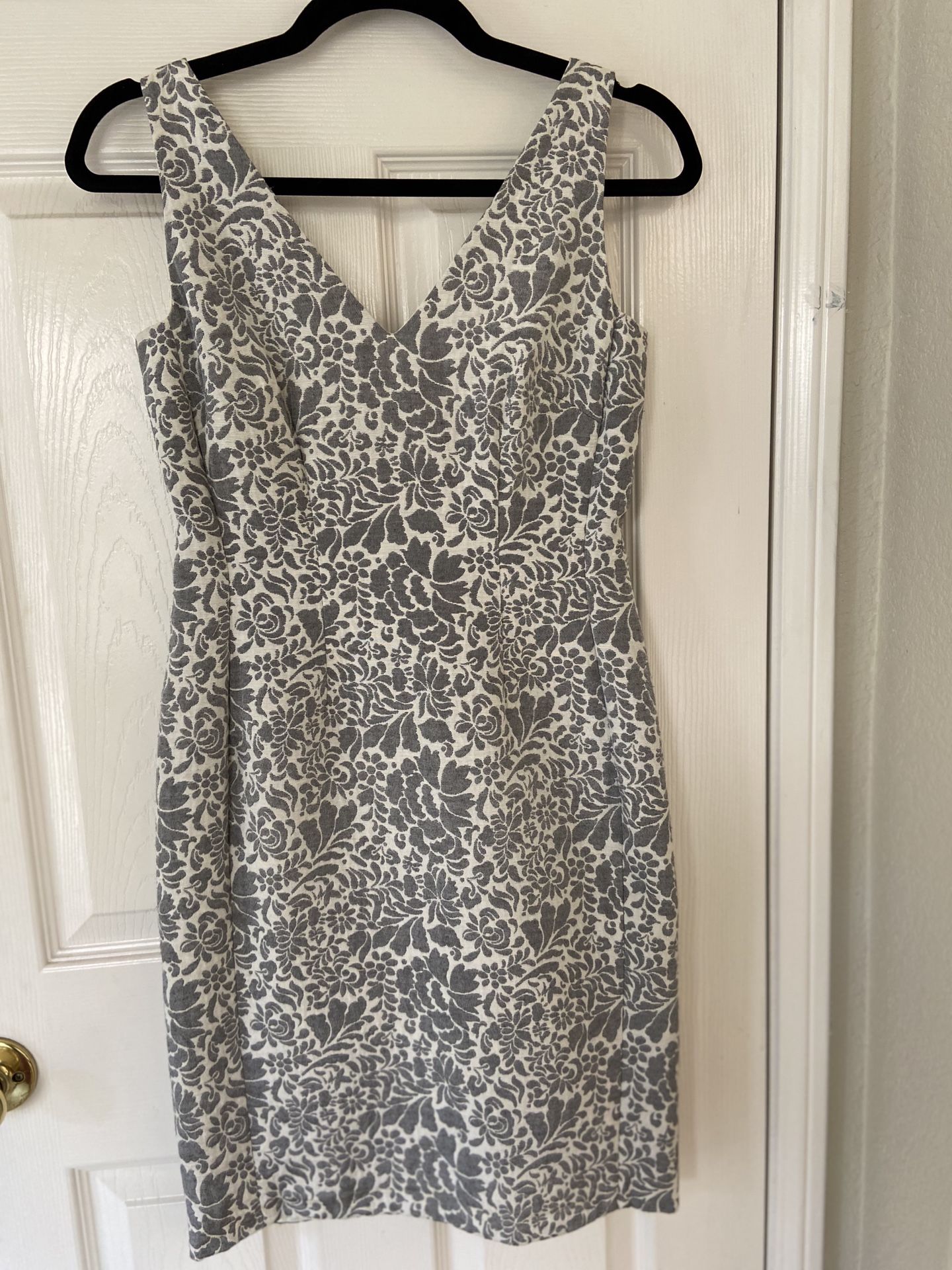 Cute gray flower print dress. Can wear a jean jacket over (casual outfit) or alone (more formal).