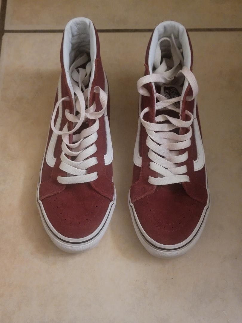 Burgundy Vans branded Sneakers Size 4 in mens Size 5.5 in womens Slightly used but basically brand new Stylish and Durable.
