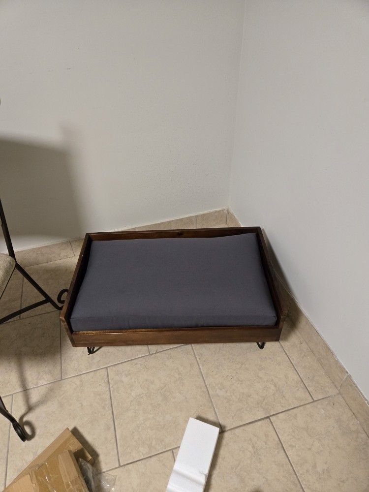 Almost new, my dog never used it. Solid wood designer dog bed for the pet that likes to have the best. This bed will last forever. Solid wood with faux leather bed pillow. For medium and small dogs. Regular cost $150, selling for $50. I would not recommend for 100 pd t dogs, might not be big enough. 29 1/5"wide by 17 ". Must pick up on south east side of Chicago. 64th and Greenwood. Call Lee at (contact info removed).