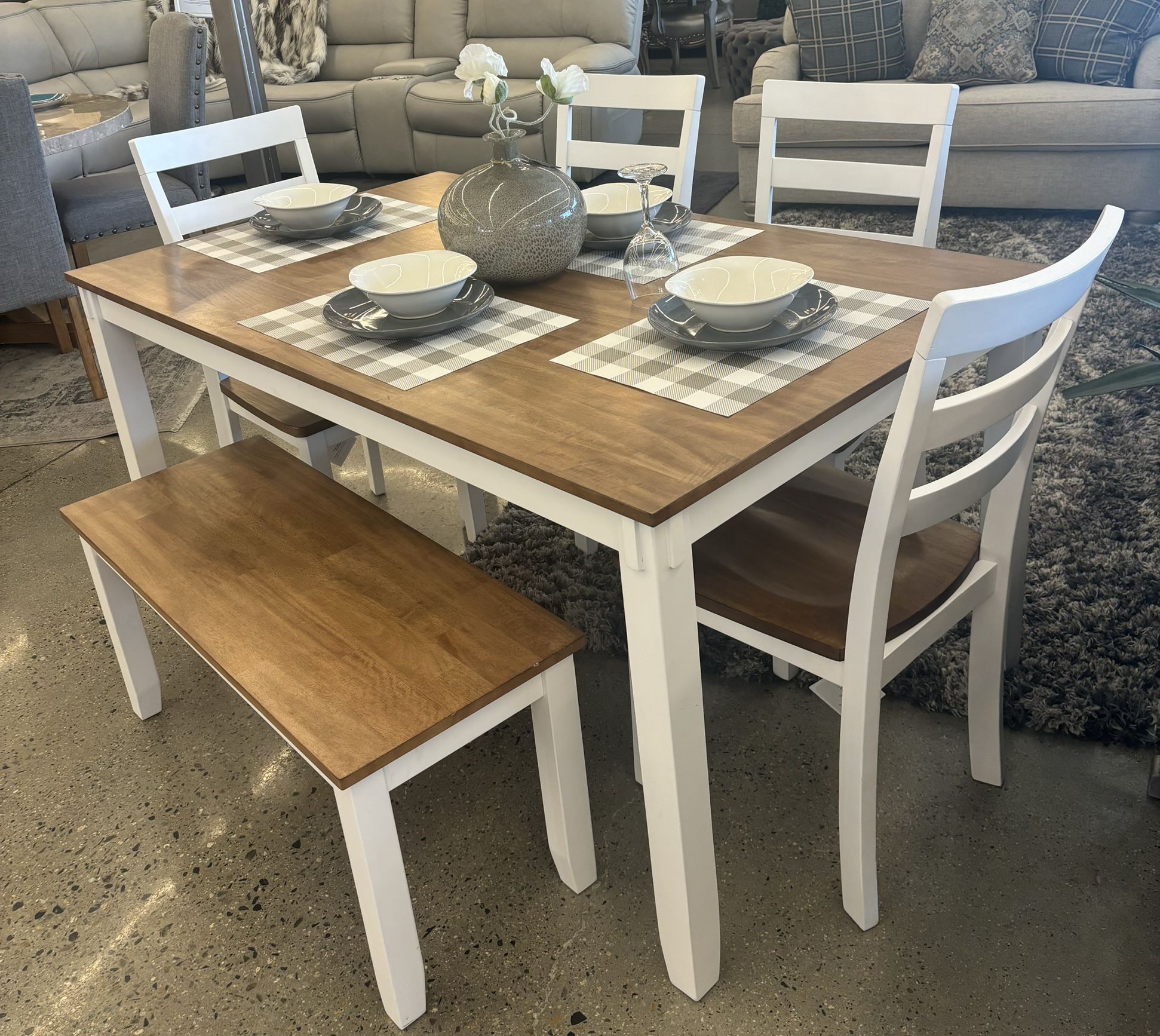 Dining Table With 4 Chairs & Bench