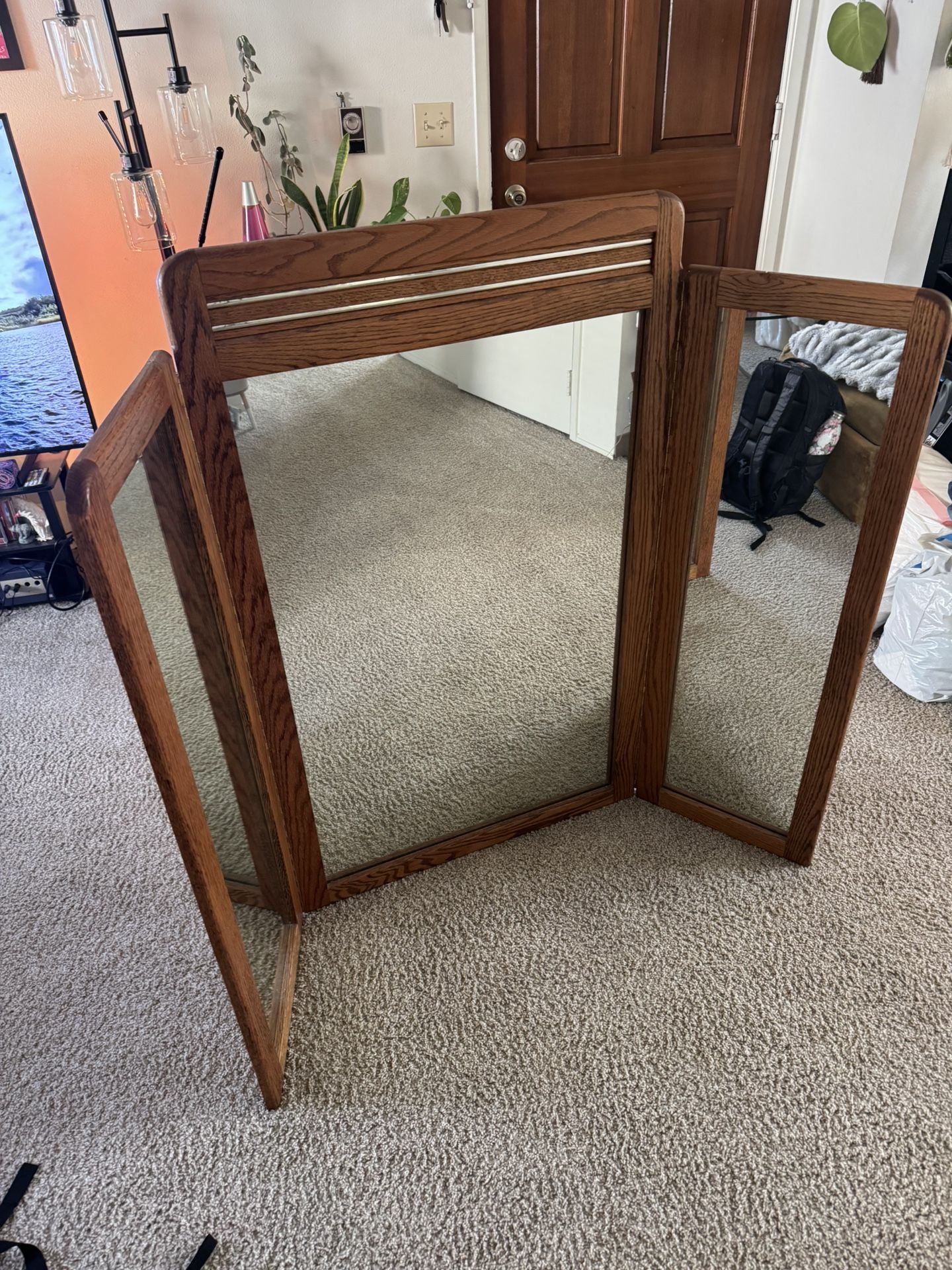 Folding vanity mirror, made with wood not sure how old