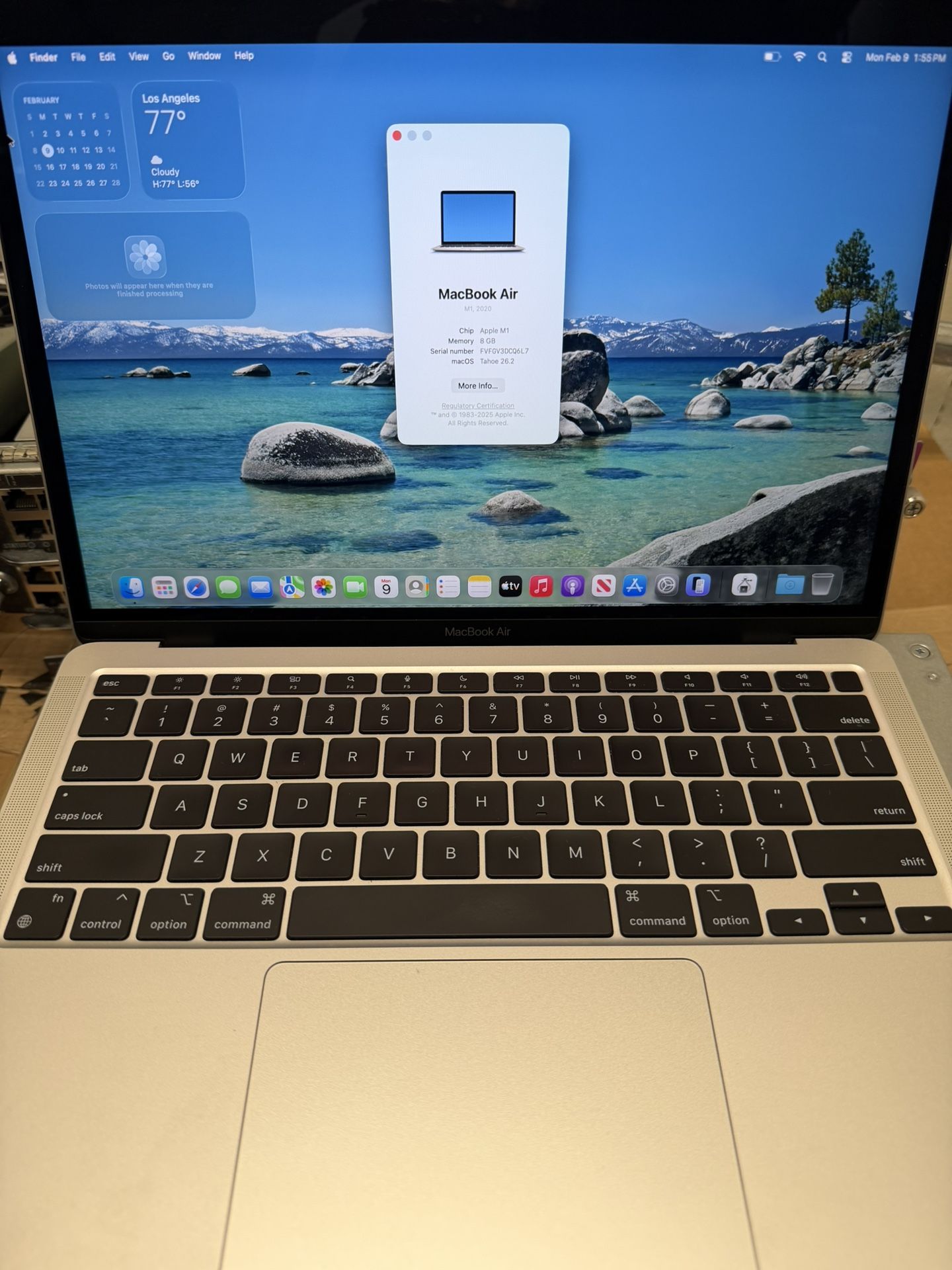 3.2 GHz Apple M1 8-Core Processor 256 GB Storage 8 GB RAM Good Battery Good Condition (no cracks, no dents, no major scratches) Silver color Comes with charger Will only meet in a public location for sale.