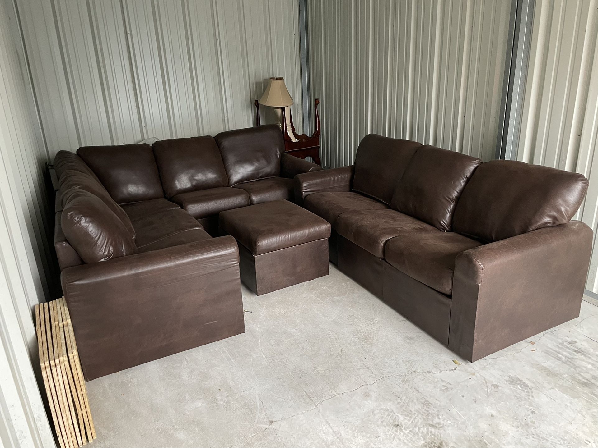 Good condition sectional, ottoman and sofa. It all breaks down into pieces! Can deliver for a fee
