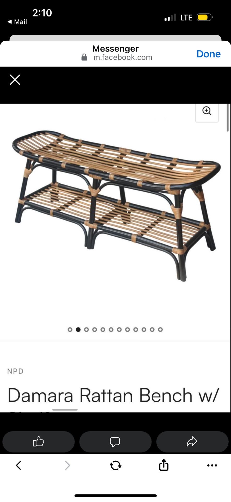 LOW PRICE MOVING- BOHO NWT $329 + TAX + $150 SHIPPING RATTAN BENCH IN TOTAL PAID $500 after shipping and taxes ASKING $100 FIRST COME FIRST SERVE MOVING
