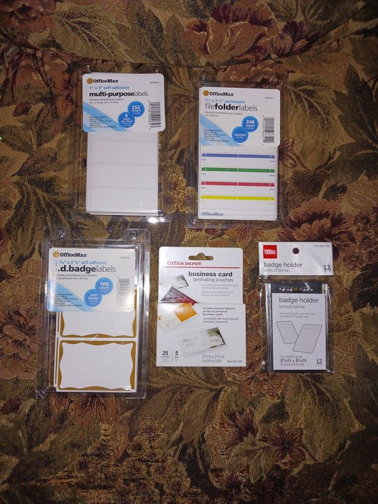 New LABELS, BADGE HOLDERS, AND LAMINATING POUCHES $8 EACH