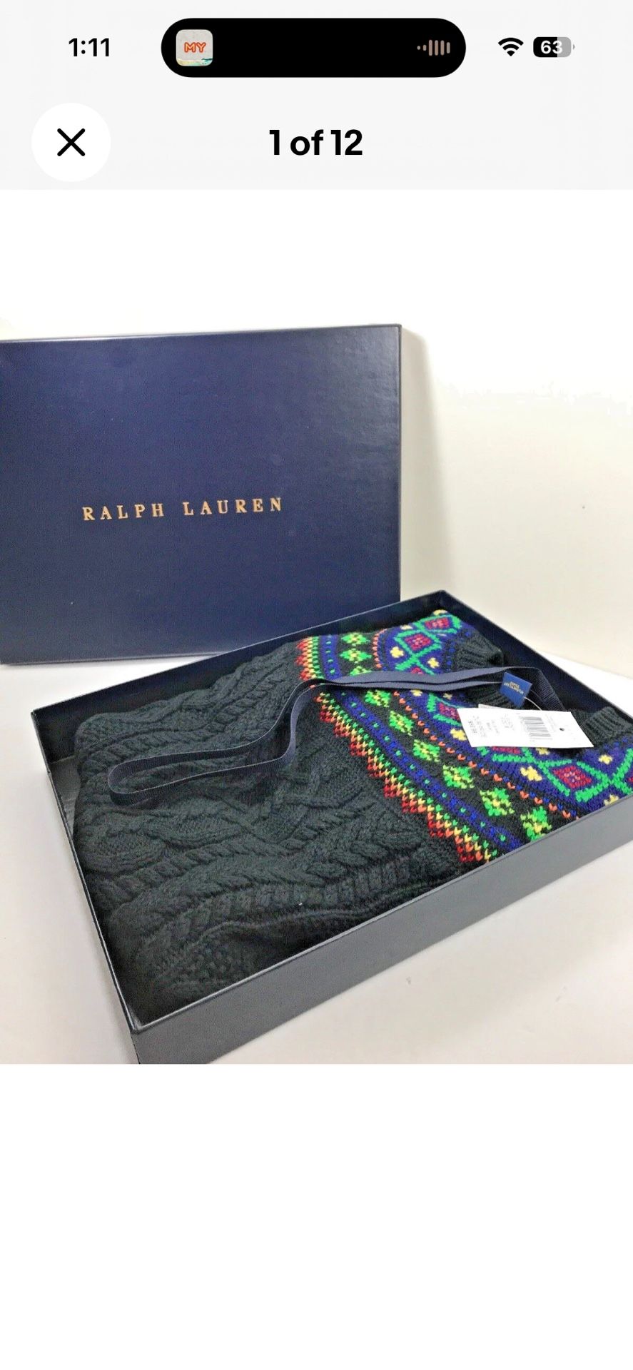 POLO RALPH LAUREN Girl's Black Christmas Winter Crewneck Cable Sweater New Size 6 (youth).