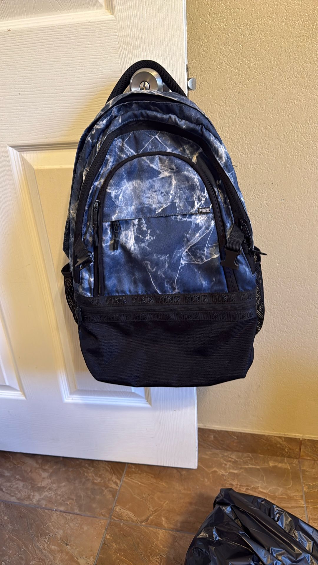 Navy blue & white marble backpack. Lightly used