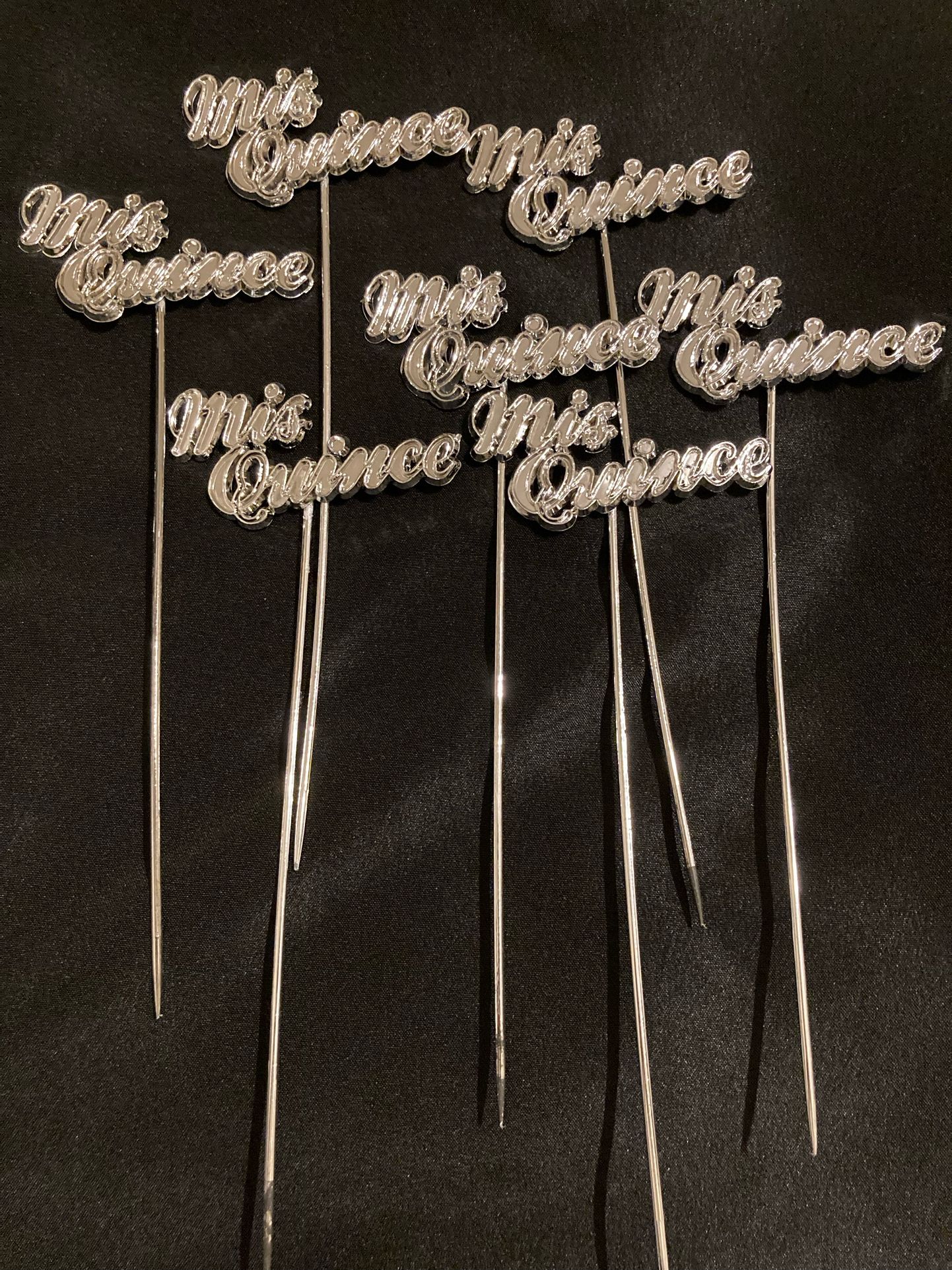 MIs Quince Silver Flower Picks Craft Cake Toppers 7 Pieces