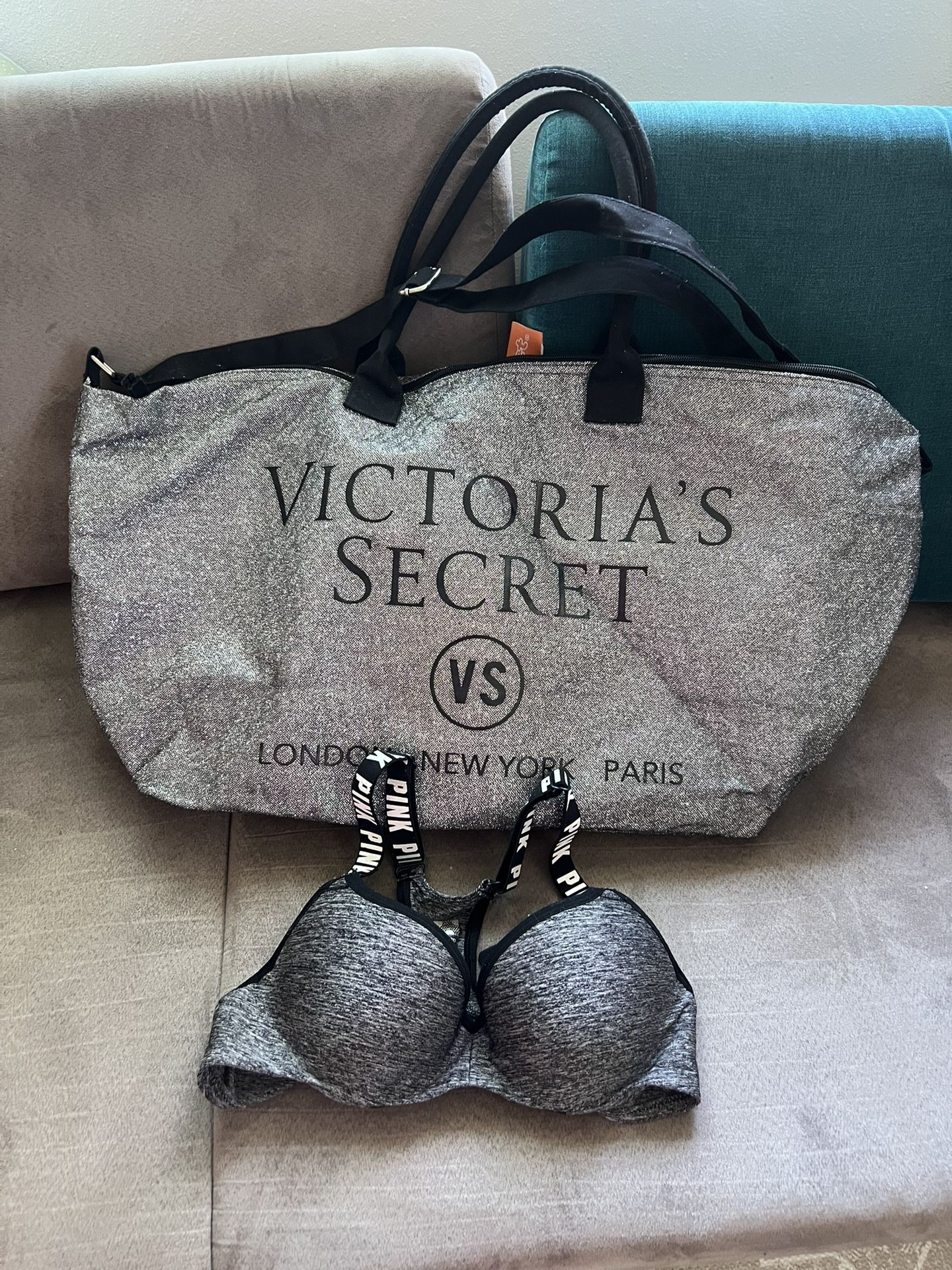 Both items are in great condition Duffle bag and push-up bra (Pink) size small